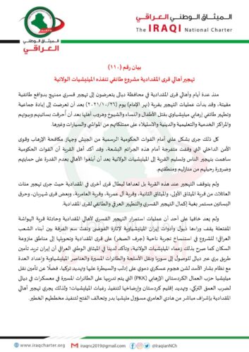 ويأتي نزوح العائلات بعدما أقر مسؤول في شرطة ديالى بأن الميليشيات شنت عدة هجمات على قرى نهر الإمام، والهواشة، والميثاق الأولى، والميثاق الثانية والعامرية، تخللتها انتهاكات واسعة خلال الأيام القليلة الماضية بما فيها عمليات إعدام ميدانية تحت مسمى الثأر العشائري حيث تم قتل مدنيين وحرق منازل وحقول زراعية وسيارات