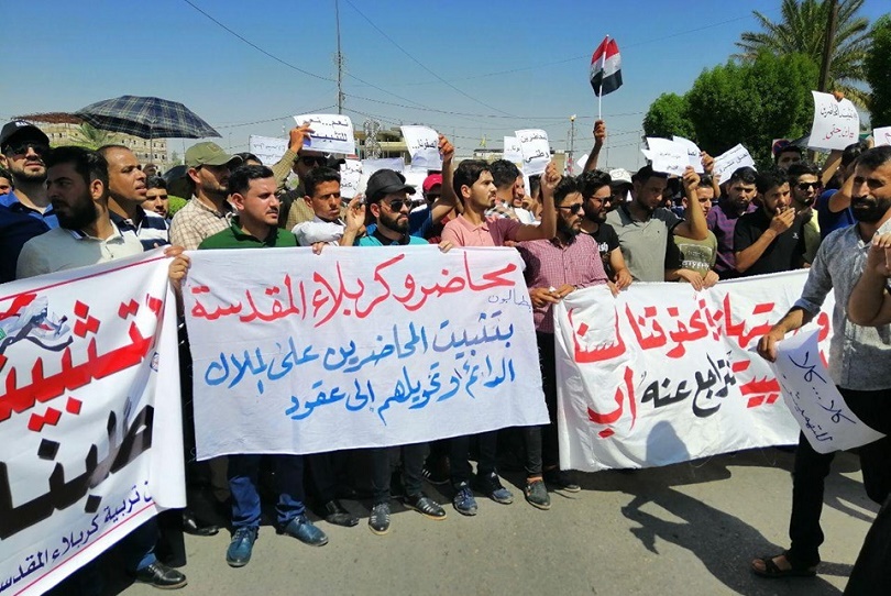 وأبدى المحاضرون استغرابهم من صمت المسؤولين في كربلاء تجاه ما سموه سلب حقوقهم مهددين بالتصعيد والاستمرار بالتظاهرات حتى تنفيذ مطالبهم.