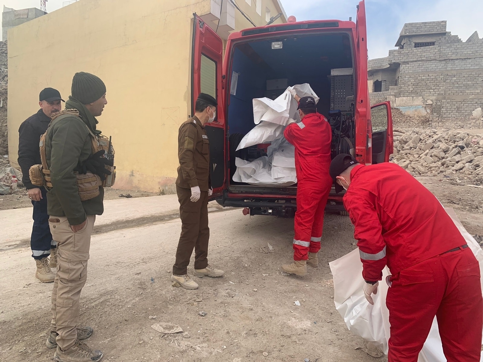 ووفقًا لبيان مديرية الدفاع المدني في نينوى، فإن “فريق البحث والإنقاذ التابع للمديرية انتشل ثمانية جثث، وهي عبارة عن بقايا عظمية مجهولة الهوية كانت تحت ركام المنازل المدمرة بمنطقتي سوق الشعارين والميدان في الموصل القديمة في الجانب الأيمن من مدينة الموصل”.
