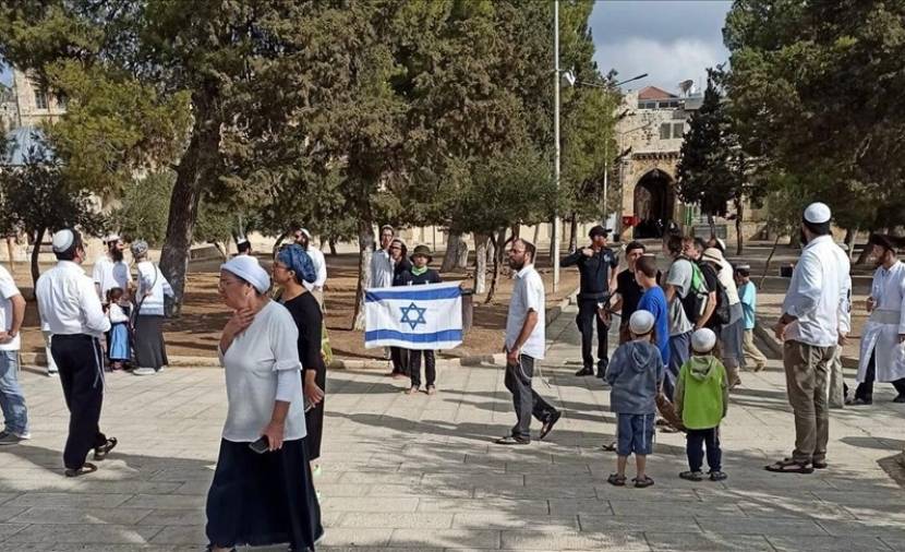وأفاد شهود العيان إنّ المستوطنين أدوا صلوات تلمودية جماعية داخل باحات المسجد الأقصى، ورفعوا أعلام الكيان المحتل داخل الأقصى بحماية من الشرطة، ما يعد انتهاكا صارخا ضد المقدسات الإسلامية.
