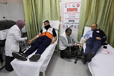 الهلال الأحمر الفلسطيني في قطاع غزة يطلق حملة تبرع بالدم للجرحى في سوريا وتركيا