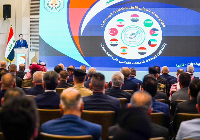 ويأتي كلام السوداني في المؤتمر الذي انعقد الثلاثاء وتشارك فيه السعودية ومصر وسوريا وإيران ولبنان والأردن والكويت وتركيا، ومجلس وزراء داخلية العرب ومكتب الأمم المتحدة المعني بالمخدّرات والجريمة، بعد ثلاثة أيام من كشف مصدر أمني عراقي عن تورط ضباط كبار في وزارة الداخلية وعناصر ميليشيات متنفذة في حيازة 12 مليون حبة مخدرة ضبطت في بغداد.