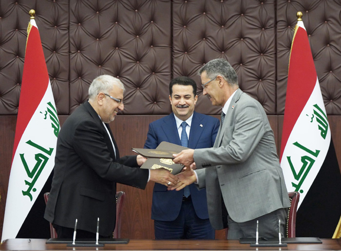 محمد شياع السوداني يشرف على توقيع مذكرة تفاهم مع وزير النفط الإيراني للاستثمار في حقول النفط الواقعة على الحدود بين البلدين من دون الكشف عن التفاصيل.