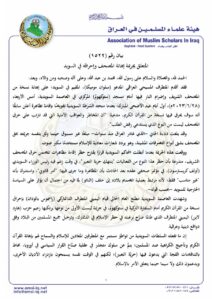 وطالبت الهيئة، المراجع الدينية المسيحية ولاسيما في العراق ببيان مواقفها إزاء هذا النوع من الجرائم الصريحة في عدائها للإسلام ومقدساته، وذات المقاصد الواضحة في صناعة الكراهية تجاه المسلمين، وأن سكوتها عن إدانة هذه الأفعال يضعها في موقف الممتنع عن تجريمها وإدانتها.
