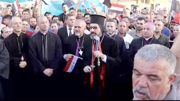 وقاد رئيس أساقفة الموصل المطران نجيب موسى ميخائيل التظاهرة التي دعا إليها مجلس مطارنة محافظة نينوى بسبب عدم جدية حكومة الإطار التنسيقي برئاسة محمد شياع السوداني في حلحلة أزمات المسيحيين وبعد أن اتهم أساقفة الموصل قائد عمليات نينوى وقيادات لواء 30 بتكميم أفواههم.