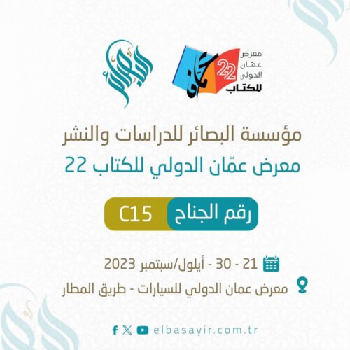 تفتح مؤسسة البصائر للدراسات والنشر رواق إصداراتها في جناح مشاركتها في الدورة العشرين لمعرض عمَّان الدولي للكتاب الذي أفتتح الخميس الحادي والعشرين من أيلول ويستمر لمدة عشرة أيّام، بمشاركة (400) دار نشر عربية وأجنبية.
