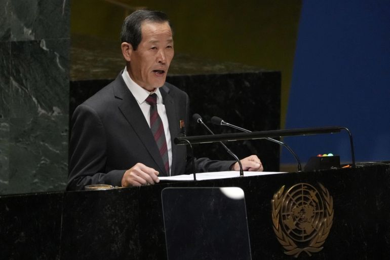 واتهم مندوب كوريا الشمالية في كلمة أمام الجمعية العامة للأمم المتحدة واشنطن بالتحريض على حرب نووية بإرسالها أسلحة إستراتيجية نووية لأول مرة منذ عقود إلى المنطقة.
