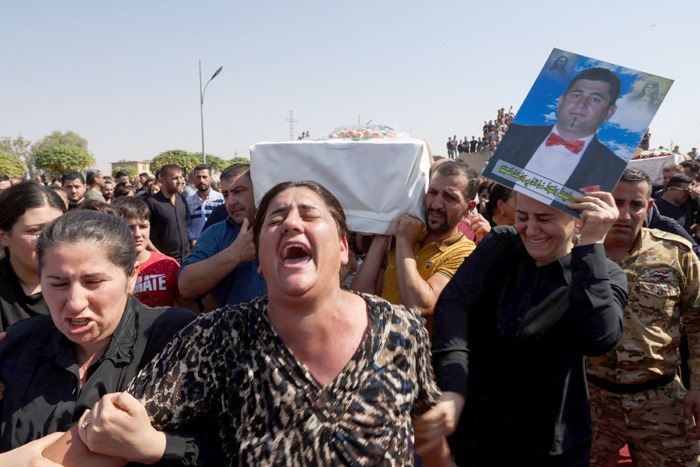 وفي كنيسة الطاهرة للسريان الكاثوليك في قرقوش صباح الخميس، جلست نساء متشحات بالسواد على المقاعد الخشبية وبدا الحزن والألم على وجوههن. على مقعد آخر عانقت امرأة رجلا جالسا إلى جانبها لم يتمكن من كبت دموعه.