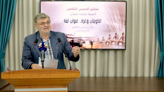 مجلس الخميس الثقافي في هيئة علماء المسلمين في العراق يخصص نشاطه لأمسية شعرية تحت عنوان "الطوفان وغزة.. عنوان الأمّة" بمشاركة نخبة من الشعراء العرب.