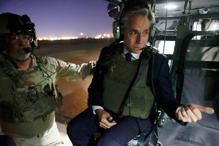 وذكر أنتوني زورشر مراسل هيئة الإذاعة البريطانية “بي بي سي” المرافق لوزير الخارجية الأمريكي في رحلته إلى العراق “وصل بلينكن إلى بغداد تحت جنح الظلام. وارتدى الوزير والوفد الدبلوماسي المرافق له صدرية الدرع الواقي من الرصاص والخوذات أثناء الرحلة القصيرة بالمروحية من مطار بغداد إلى السفارة الأمريكية، حيث توجه بعد ذلك بسيارة السفارة الخاصة إلى اجتماع مع رئيس الوزراء محمد شياع السوداني”.