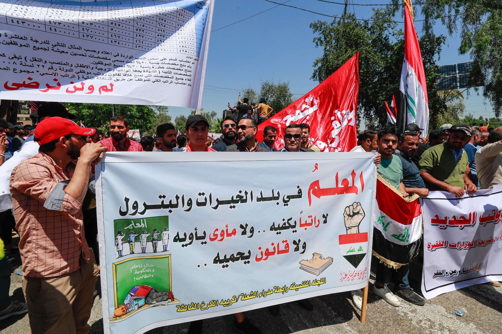 وأكد المتظاهرون على أن رواتبهم لا تكفي لسد غلاء المعيشة، في ظل انخفاض قيمة الدينار أمام الدولار، وتفاوت رواتبهم مع رواتب وزارات أخرى، حيث يتقاضى عدد كبير منهم نحو 300 ألف دينار (200 دولار) فيما يتقاضى البعض الآخر نحو مليون ونصف (1000 دولار).