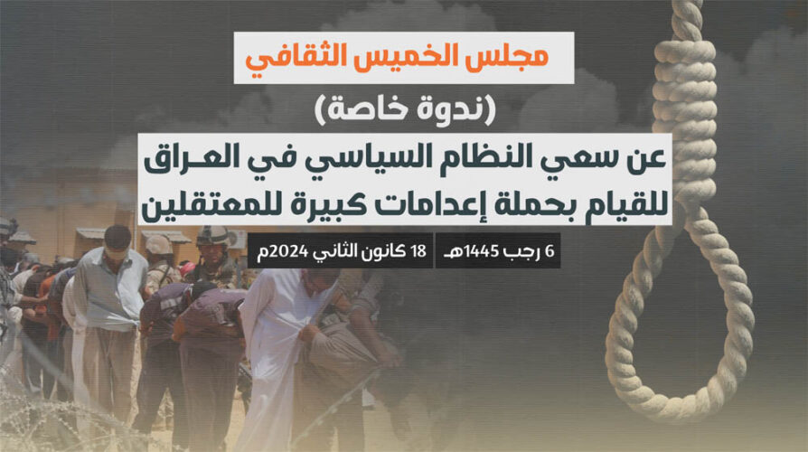 حذرت ورقتان قدمتا في أمسية مجلس الخميس الثقافي في مقر هيئة علماء المسلمين في العراق، من تداعيات تمادي النظام السياسي في العراق بارتكاب جرائم الإعدام.
