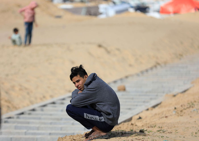 وتحلّق أطفال نازحون في أحد مراكز الإيواء بمحافظة رفح جنوب قطاع غزة، حول نارٍ أشعلوها للتدفئة من الأجواء الشتوية الباردة.