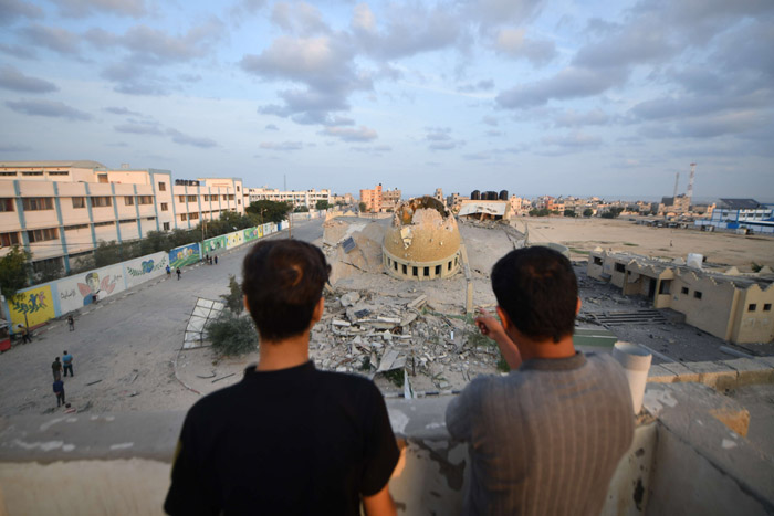 ولا يتردد الشاب ياسر حسونة (23 عامًا) في الذهاب إلى المسجد في كل موعد صلاة، حيث يؤذن ويتلو القرآن على أنقاضه، في تحد لإسرائيل.