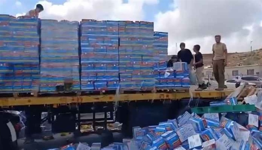 الضفة الغربية- هاجم “إسرائيليون” شاحنات مساعدات إنسانية، ومنعوا مرورها من الضفة الغربية إلى قطاع غزة، وألقوا محتويات إحداها على الأرض.