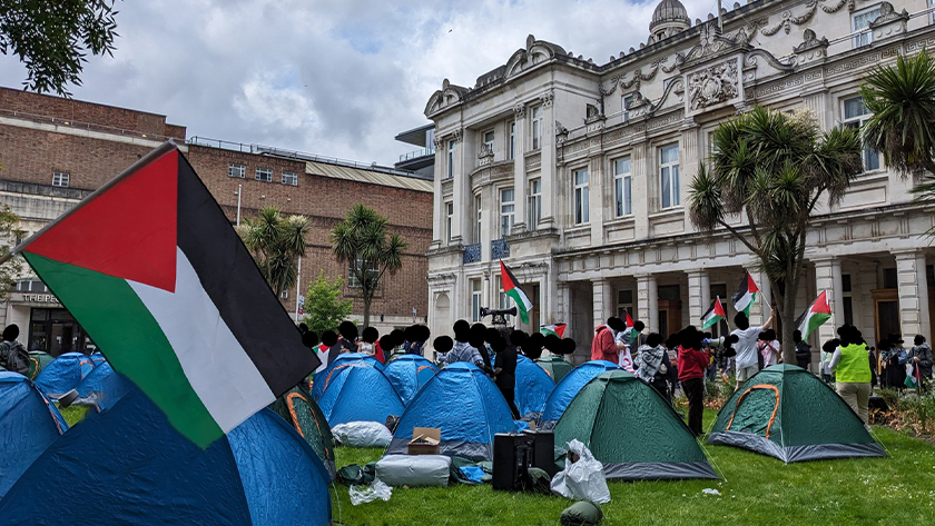 لندن – انضمت جامعة كوين ماري في العاصمة البريطانية لندن، إلى حراك طلاب الجامعات المتضامنين مع فلسطين.