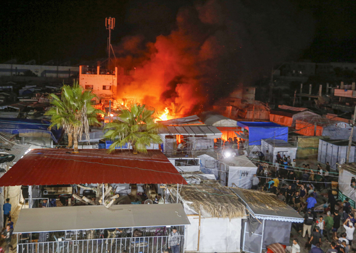 وفجر الاثنين، استشهد 4 فلسطينيين وأصيب نحو 40 آخرين، في قصف إسرائيلي استهدف خياما للنازحين في ساحة مستشفى “شهداء الأقصى”؛ ما أدى إلى اندلاع حريق كبير طال نحو 30 خيمة.