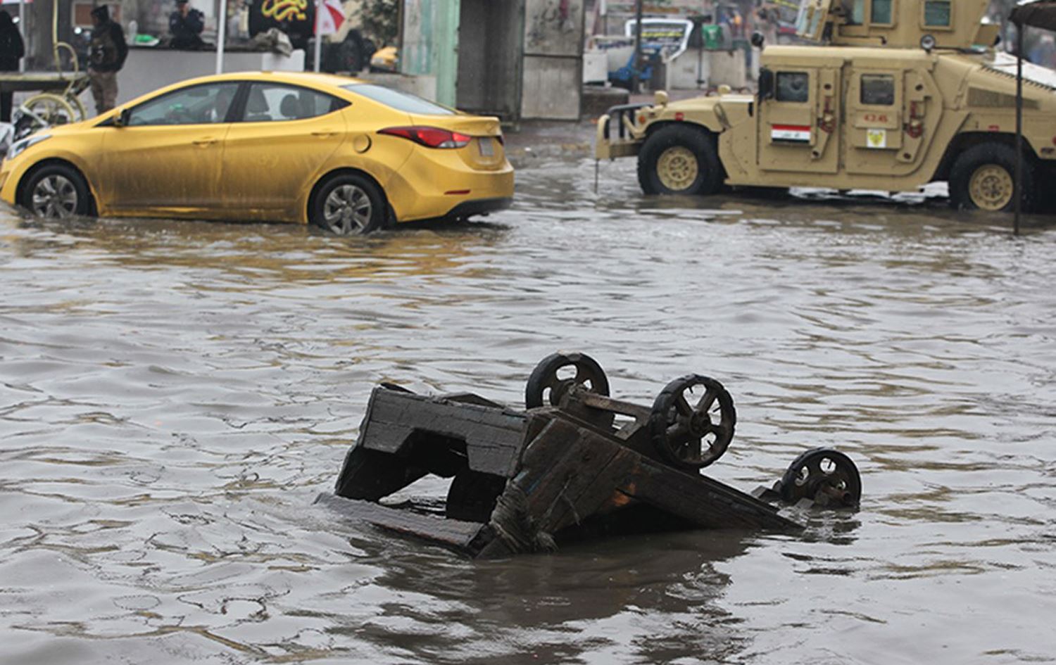 هذا وغرقت الكثير من المناطق في بغداد وعدد من المحافظات عقب موجة أمطار غزيرة