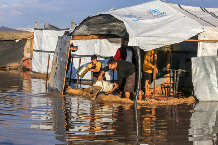 وأوضح مهنا أن الأجواء الشتوية القاسية تفاقم معاناة النازحين، ومياه الأمطار تغمر أمتعتهم وتعرضهم لبرد قارس.
