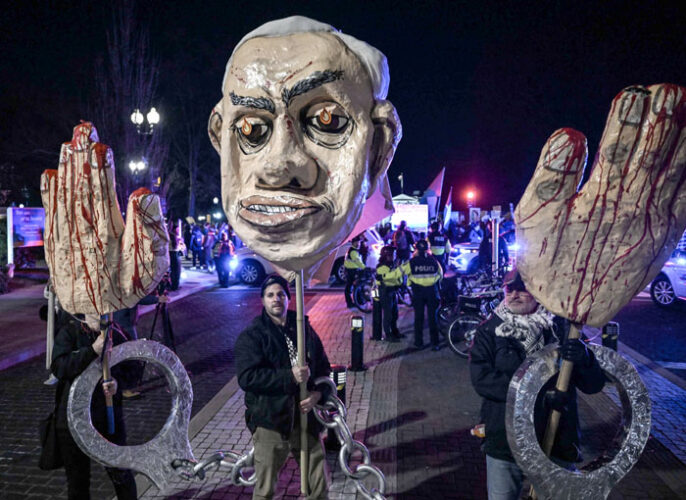 وشارك مئات الأشخاص من مختلف منظمات المجتمع المدني في المظاهرة، حيث رفعوا الأعلام الفلسطينية وهتفوا بشعارات مثل: “الحرية لفلسطين”، و”توقفوا عن استضافة مجرم حرب”، و”نتنياهو، أنت طاغية”، و”نتنياهو، أنت جبان”.