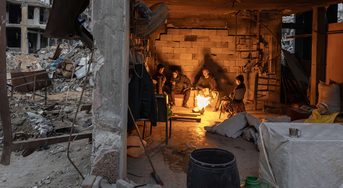 على أنقاض منازلهم المدمرة، وداخل خيام مصنوعة من القماش غير المخصص للوقاية من تسرب مياه الأمطار ولا تصمد أمام الرياح، يتحلق الفلسطينيون مع أطفالهم حول ألسنة اللهب في محاولة خطيرة للهروب من موجات الصقيع القاتلة.