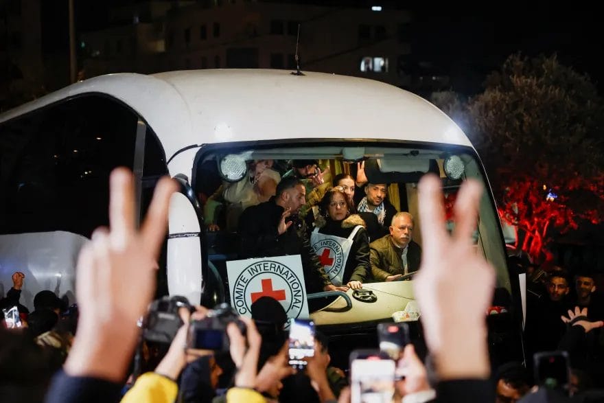 رام الله- ووصلت حافلة تقل عشرات الأسرى الفلسطينيين برفقة طواقم من الصليب الأحمر الدولي إلى قصر الثقافة في مدينة رام الله، وسط استقبال جماهيري من عائلاتهم وحشود كانت بانتظارهم، كما ظهر الإعياء على بعض الأسرى ونقلوا إلى المستشفى.